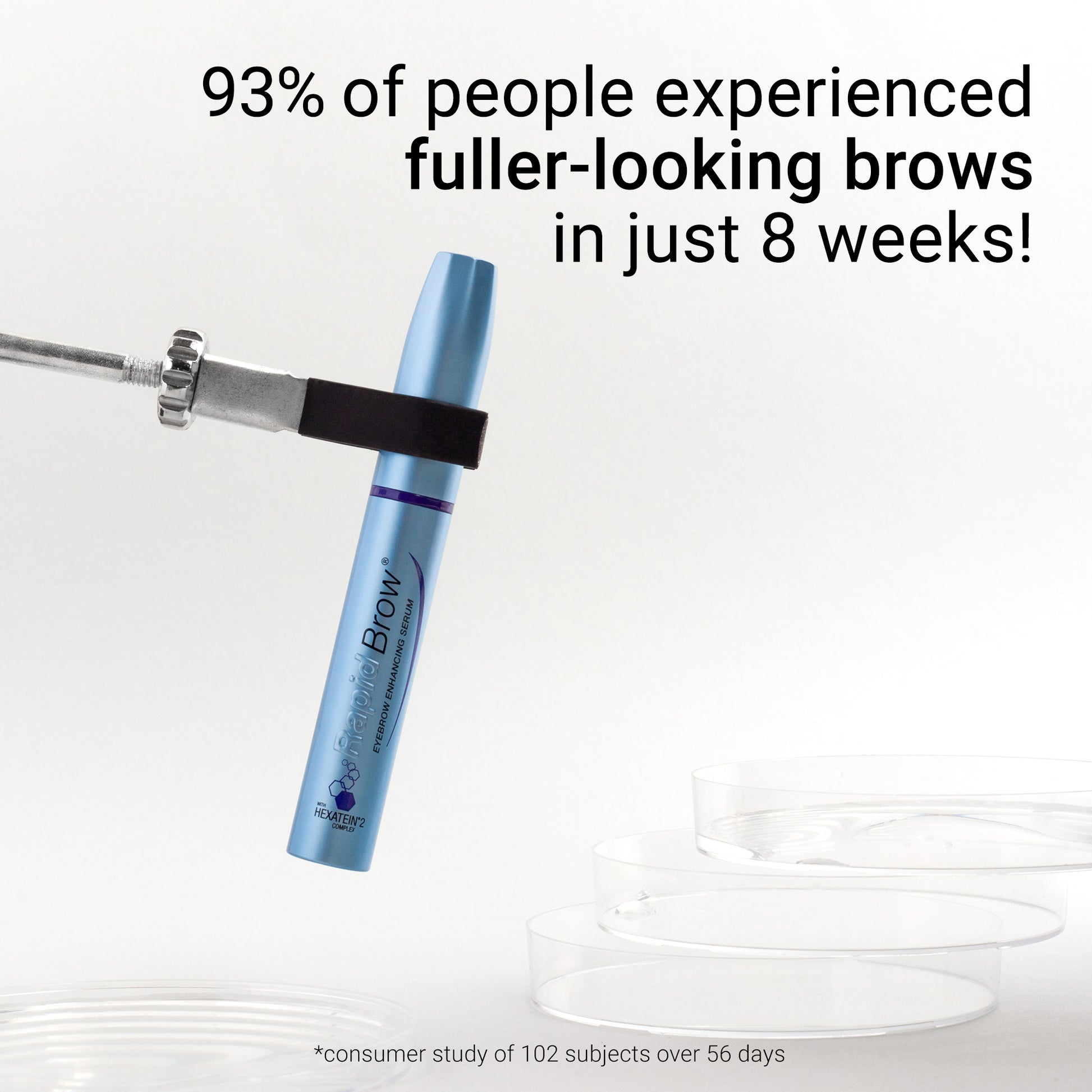 Our consumer studies found that 93% experienced fuller-looking brows in as little as 8 weeks when using RapidBrow® Eyebrow Enhancing Serum!*