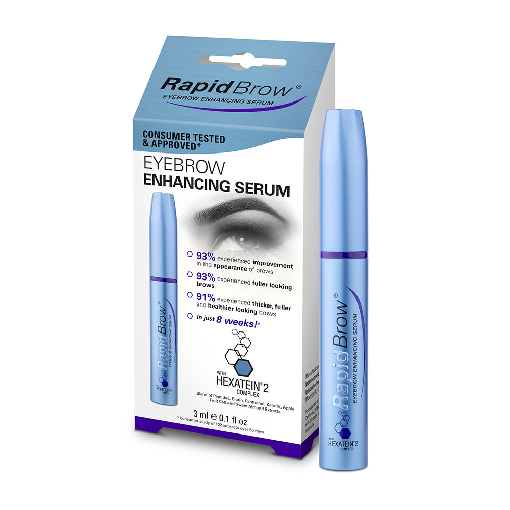 RapidBrow® Eyebrow Enhancing Serum on the other hand addresses the issues specifically concerning eyebrows. Formulated with unique Hexatein®2 Complex, RapidBrow® helps condition the brow hair and improve the appearance of eyebrow density, resulting in more youthful-looking brows.